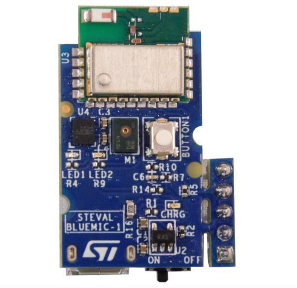 The STEVAL-BLUEMIC-1 evaluation board mounts the SPBTLE-1S Bluetooth® SMART application processor compliant with BT specification v4.2. It supports multiple simultaneous roles and can act as a Bluetooth Smart master and slave device at the same time.