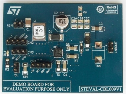 The STEVAL-CBL009V1 demonstration board implements a DC-DC converter based on ST’s LNBH25 device. It is used to power LNBs in dish antennas to receive satellite TV signals.
