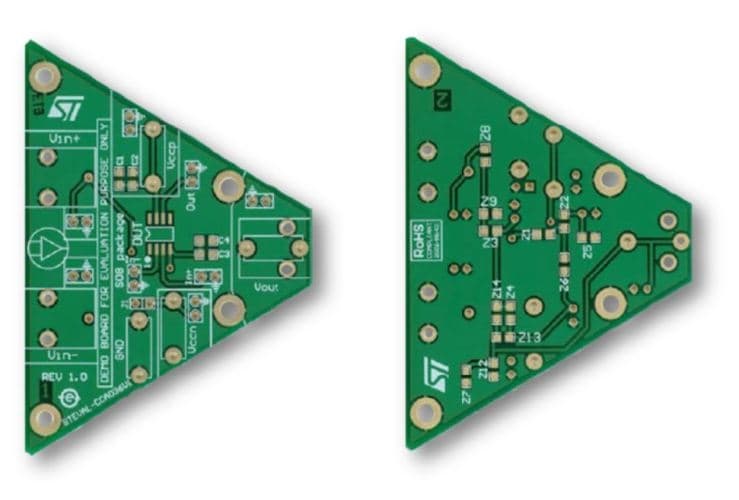 The STEVAL-CCA036V1 demonstration board is designed to help characterize single operational amplifiers in SO8 packages.