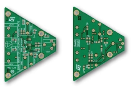 The board is designed for surface-mounted components and can be used to perform onboard characterization prior to the integration of STMicroelectronics’ products in your designs. Resistor and capacitor footprints are implemented for the 0805 series. A set of two decoupling capacitors have been implemented on both power supply pins so as to benefit from the maximum performances of ST products. In order to reject a wide range of frequencies, 10 nF and 4.7 μF are good values for these capacitors.