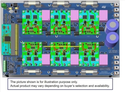 控制板设计为164引脚的PCI Express®即插即用型PCB,搭载STM32G473QB微控制器(基于Arm Cortex-M4 MCU,运行频率为170 MHz,具有128 KB Flash存储器、数学加速器和高模拟集成度),并配备STLINK V3连接器,用于对MCU进行编程并与PC进行串行通信。