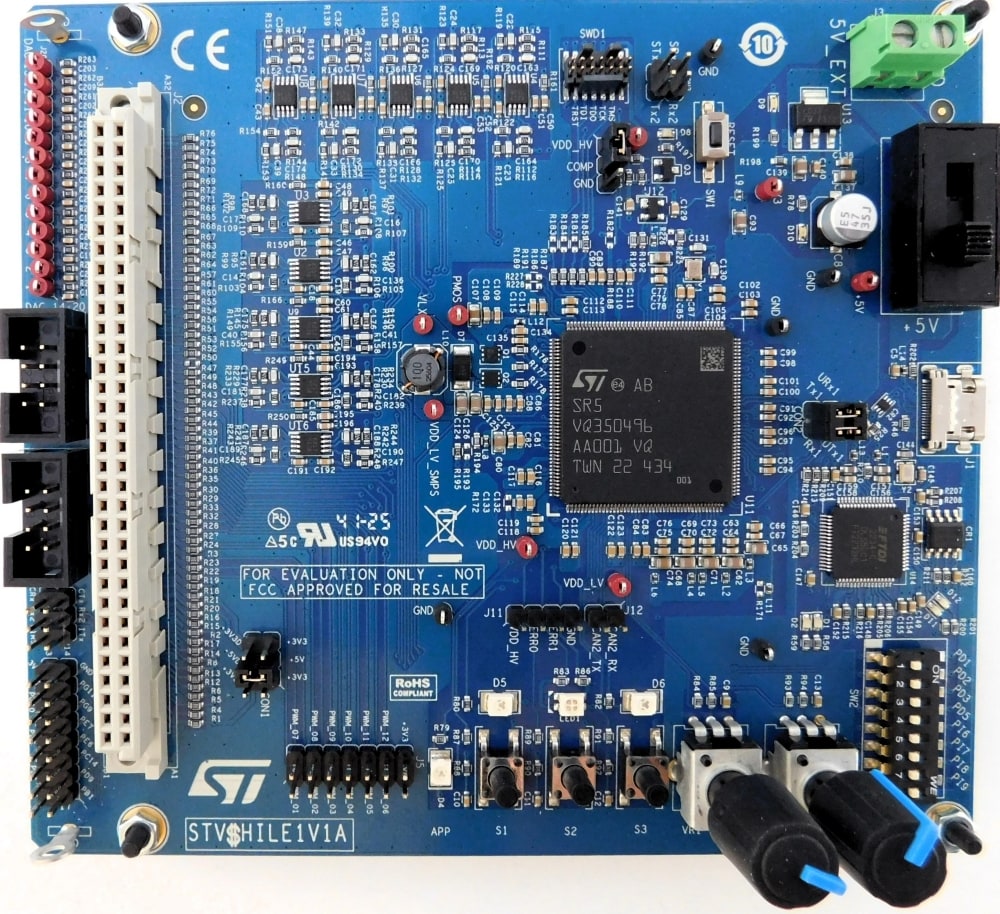 The STEVAL-HILE1G4K1 evaluation kit includes an emulator board based on the Stellar E1 MCU and a control board featuring the STM32G474RE MCU.
