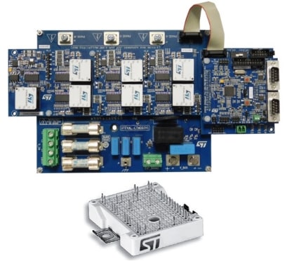 The hardware platform is a stackable solution consists of the power stage (STEVAL-CTM002V1), which contains the power module and current sensing circuitry, and the driving kit (STEVAL-CTM001V1) connected via external connectors.