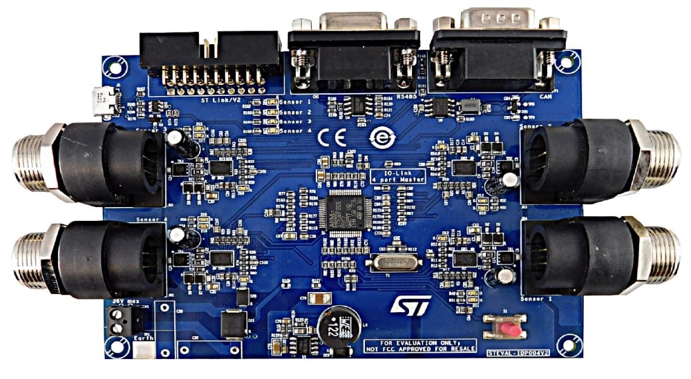 STEVAL-IDP004V2评估板嵌入了STM32F205RB微控制器和四个独立的L6360 IC。