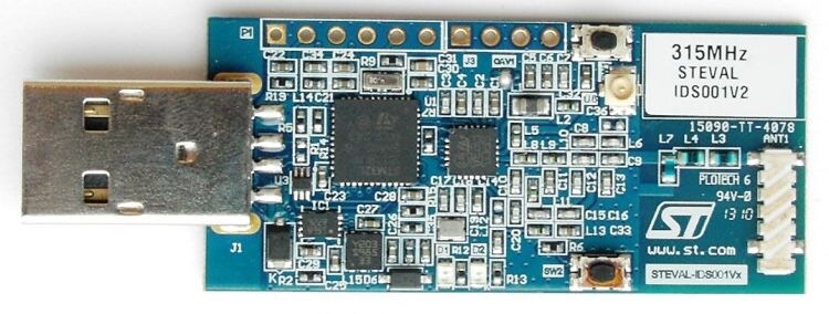 - SPIRIT1 low power sub-GHz transceiver integrated in a USB dongle for direct PC connection