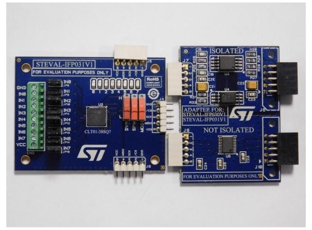 The STEVAL-IFP031V1 evaluation board can be connected in daisy chain with other STEVAL-IFP031V1 evaluation boards.
