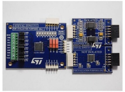 The adapter board can be placed between the first STEVAL-IFP031V1 evaluation board in the chain and the STEVAL-PCC009V2 STM32x microcontroller evaluation board. This adapter offers two buses: isolated and non-isolated.