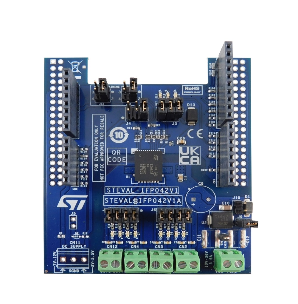 STEVAL-IFP042V1直接与由GPIO引脚和Arduino® R3连接器驱动的STM32 Nucleo上的微控制器互连,确保与NUCLEO-F401RE和NUCLEO-G431RB开发板的连接性。
