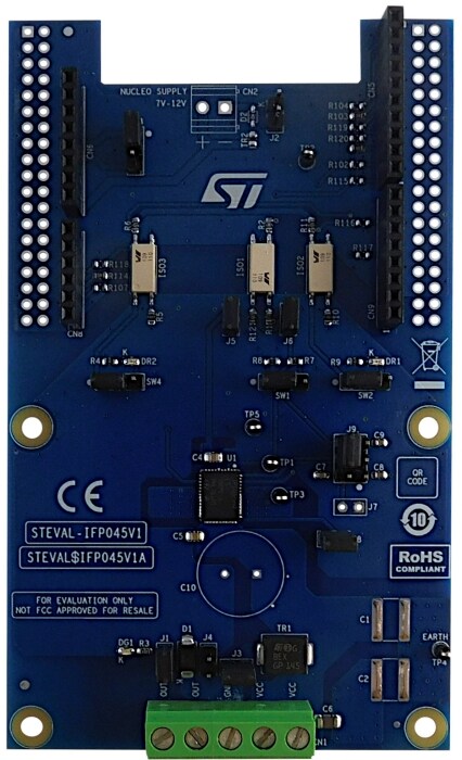 STEVAL-IFP045V1可通过由GPIO引脚和Arduino R3连接器驱动的5 kV光耦元件与STM32 Nucleo上的微控制器相连接。