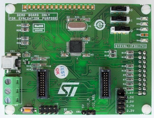 The STEVAL-IFS017V1 demonstration board can operate in USB powered mode with a graphical user interface (GUI). The graphical user interface is used to access the registers and demonstrate the features of temperature sensors and RTCs.