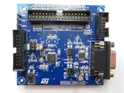 The STEVAL-IHM033V1 is a control stage demonstration board based on the STM32F100CB microcontroller. The board has been designed as an evaluation environment for motor control.