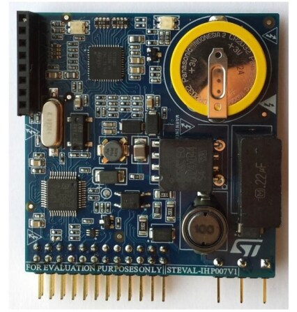 Note that this board only functions in a network with an EVALKITST7580-1 board designated as the master; this is achieved via UART commands.