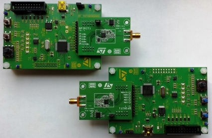 The STEVAL-IKR002V4 development kit includes 2 RF daughterboards based on the SPIRIT1 low power, sub-GHz low data rate transceiver suitable for ISM bands and wireless M-BUS, and 2 motherboards based on the STM32L low power microcontroller to control the daughterboards.