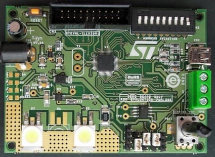 The purpose of the STEVAL-ILL030V1 demonstration board is to demonstrate the performance of ST devices in an LED lighting control application, using the DMX512 communication protocol demonstration firmware in transmitter, receiver and standalone modes.