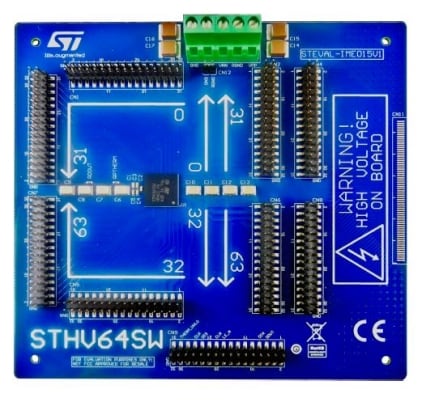 The STEVAL-IME015V1 evaluation board is based on the state-of-the-art STHV64SW high voltage switch matrix for ultrasound imaging applications.