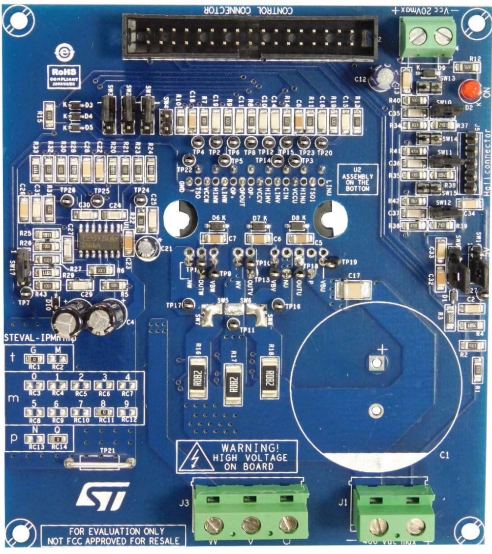 The STEVAL-IPMnG8Q is compatible with ST’s control board based on STM32, providing a complete platform for motor control.