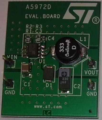 The STEVAL-ISA089V1 demonstration board provides a platform for evaluation of the L5972D, a step-down monolithic power switching regulator with a minimum switch current limit of 2 A capable of delivering more than 1.5 A of DC current to the load depending on application conditions.