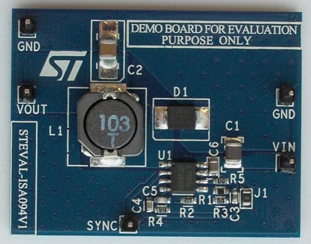 The STEVAL-ISA094V1 is a step-down switching power supply based on STMicroelectronics’ L7981 switching regulator in an HSOP8 package.