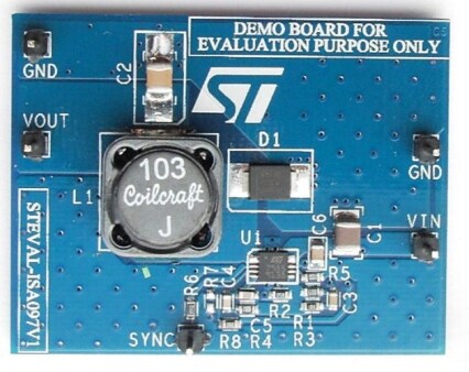 The STEVAL-ISA097V1 demonstration board is a step-down switching power supply based on the L7985 in DFN10 package.