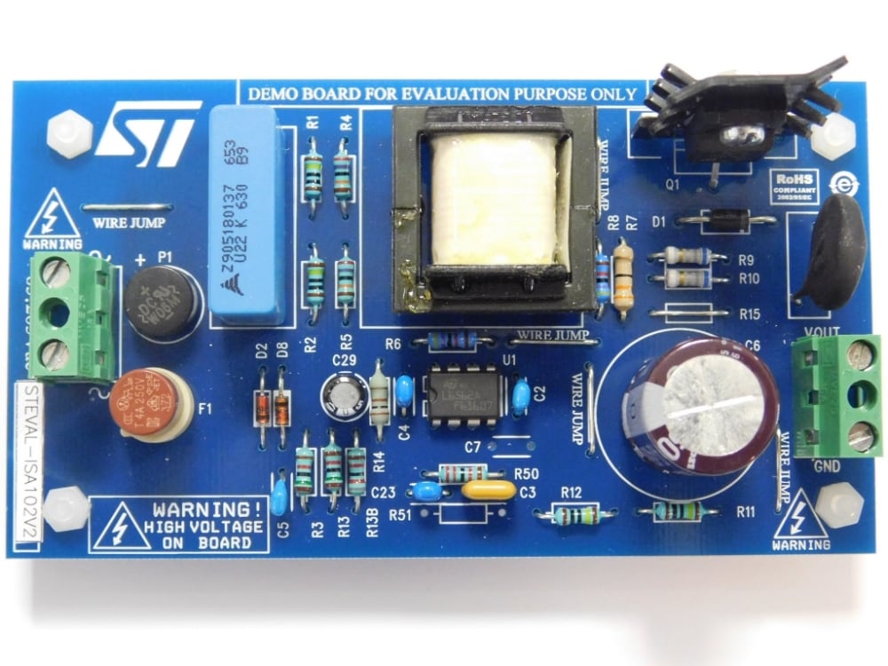 The STEVAL-ISA102V2 implements an 80 W, wide-range mains input and a PFC pre-conditioner suitable for lighting, adapters, consumer smps, etc.