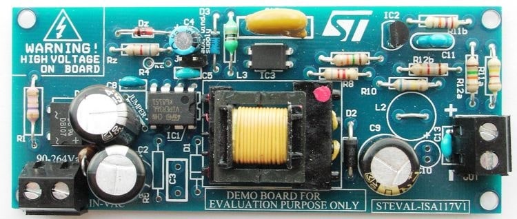 This board implements a 4 W single-output wide range mains power supply set in flyback isolated topology, using the VIPER16LN, an off-line high voltage converter by STMicroelectronics.