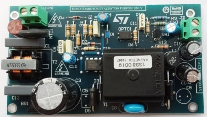 The STEVAL-ISA125V1 is a 5 V, 2 A demonstration application with 3.3 A peak current capability of 1.9 sec, using the new VIPer28LN offline high-voltage converter from STMicroelectronics.