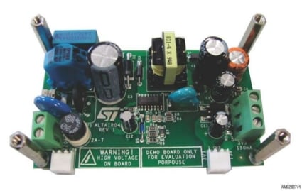The STEVAL-ISA133V1 demonstration board uses the new ALTAIR04-900, a quasi-resonant (QR) current-mode controller IC specifically designed for QR ZVS (zero voltage switching at switch turn-on) flyback converters, which combines a high-performance low-voltage PWM controller chip and a typical 16 RDSon, 900 V, avalanche-rugged power MOSFET in the same package.