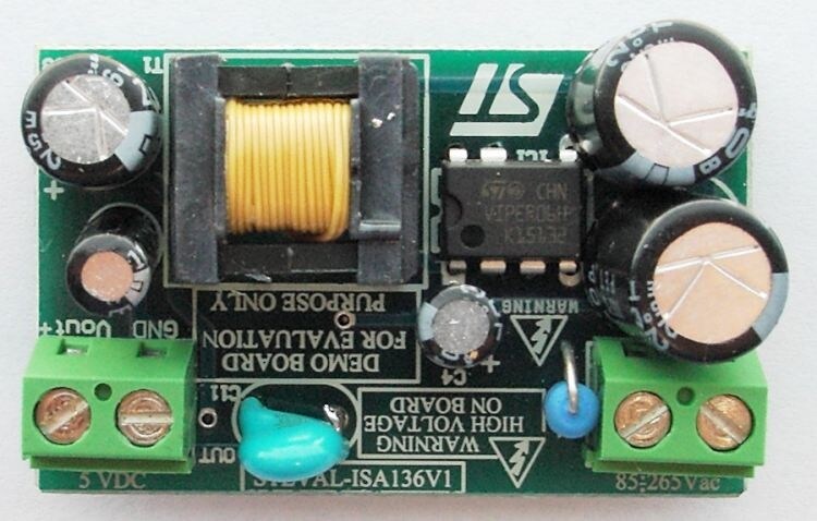 The STEVAL-ISA136V1 evaluation board implements a 5 V / 0.6 A isolated flyback 3 W wide-range mains developed for general-purpose applications.