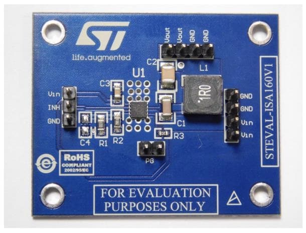 The STEVAL-ISA160V1 evaluation board is based on the AST1S31HF internally compensated 2.3 MHz fixed-frequency PWM synchronous step-down regulator.