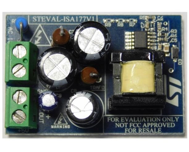 The STEVAL-ISA177V1 evaluation board implements a wide-range converter in flyback non isolated topology, delivering 0.85 A on a 5 V output for general purpose applications.