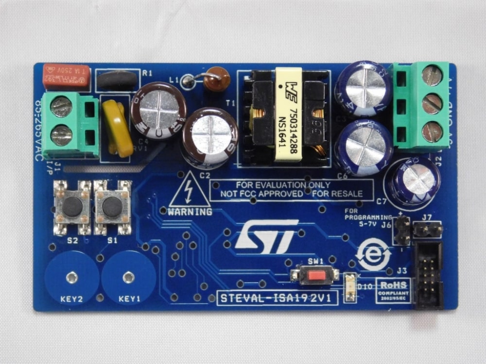 STEVAL-ISA192V1配备STM32L0微控制器,可检测触觉按钮和电容式触摸界面。STM32L0内核管理VIPer0P以实现ZPM中的最低功耗,同时为微控制器和用户界面(电容式触摸和按钮)供电,并在标准操作模式下仍保持相当高的整体效率。