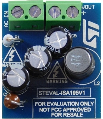 The STEVAL-ISA195V1 evaluation board implements a wide range mains buck converter (5 V/0.36 A) developed for general purpose applications.