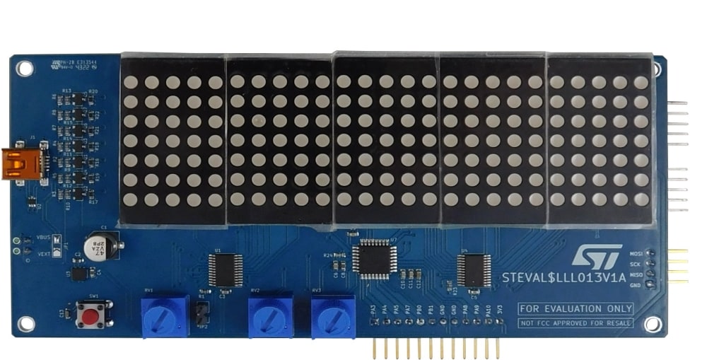STEVAL-LLL013V1是一款7x25 LED矩阵评估板,由两个STP16CPC26 LED驱动器驱动。