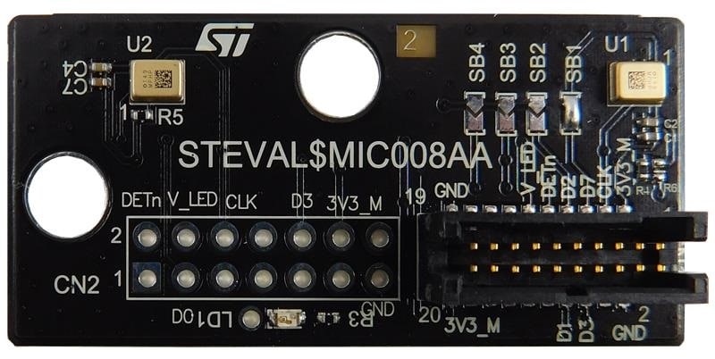 - Two MP23DB01HP bottom port digital MEMS microphones