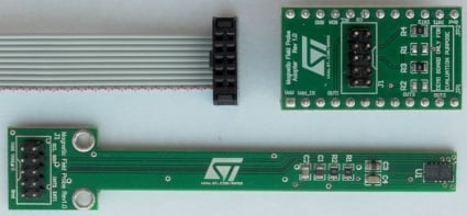 The STEVAL-MKI114V1 demonstration board is a kit made up of a probe, mounting the LSM303DLHC compass module, which is connected through flat cable to an adapter board designed to make it compatible with the STEVAL-MKI109V1.