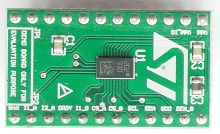 The STEVAL-MKI123V1 can be plugged into a standard DIL 24 socket. The adapter provides the complete LSM330D pinout and comes ready-to-use with the required decoupling capacitors on the VDD power supply line.