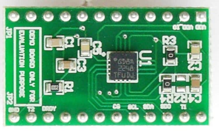 The STEVAL-MKI125V1 can be plugged into a standard DIL24 socket. The adapter provides the complete A3G4250 pinout and comes ready to use with the required decoupling capacitors on the VDD power supply line.
