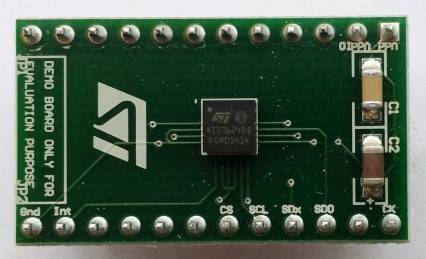 The STEVAL-MKI158V1 can be plugged into a standard DIL24 socket. The adapter provides the complete AIS3624DQ pinout and comes ready-to-use with the required decoupling capacitors on the VDD power supply line.