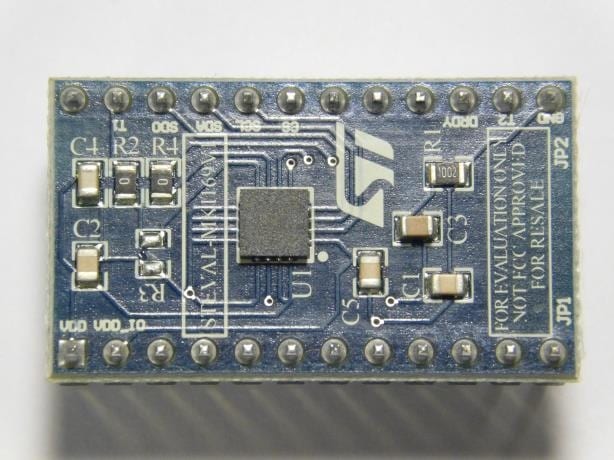 The STEVAL-MKI169V1 can be plugged into a standard DIL24 socket. The adapter provides the complete I3G4250D pinout and comes ready to use with the required decoupling capacitors on the VDD power supply line.