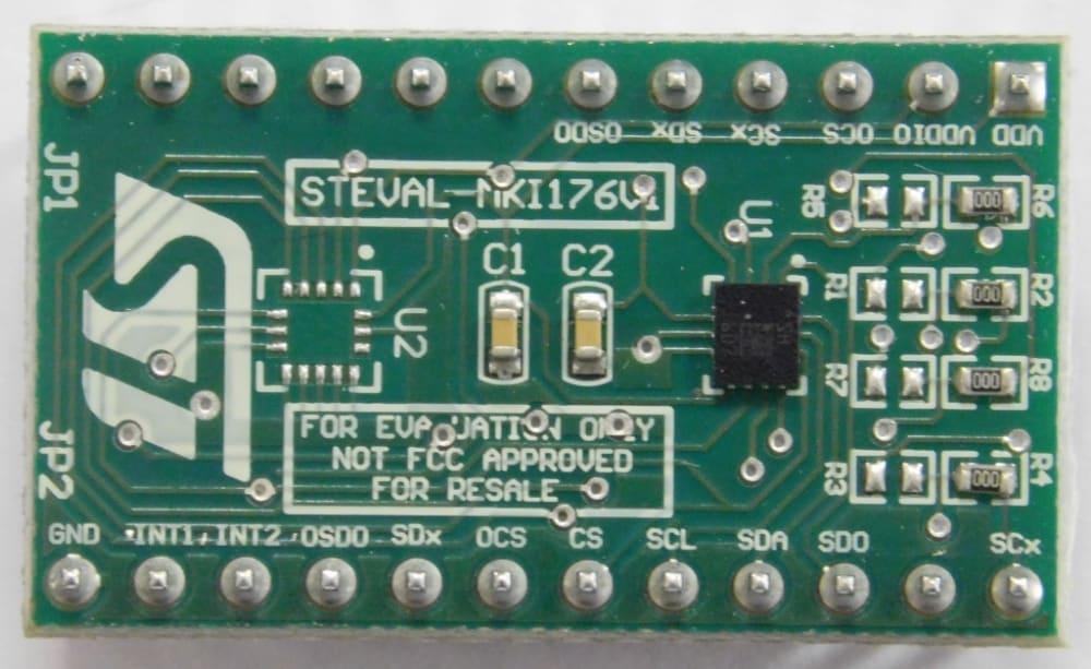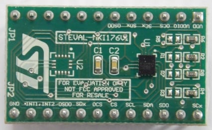 The STEVAL-MKI176V1 can be plugged into a standard DIL24 socket. The adapter provides the complete LSM6DS3H pin-out and comes ready-to-use with the required decoupling capacitors on the VDD power supply line.