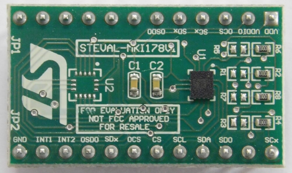 The STEVAL-MKI178V1 can be plugged into a standard DIL24 socket. The adapter provides the complete LSM6DSL pinout and comes ready-to-use with the required decoupling capacitors on the VDD power supply line.