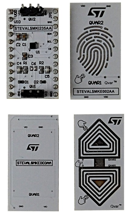 STEVAL-MKI235KA评估套件基于LIS2DUXS12惯性模块(带有Qvar静电传感器和用于滑动手指识别和通用检测的三种不同电极),可以兼容STEVAL-MKI109V3。