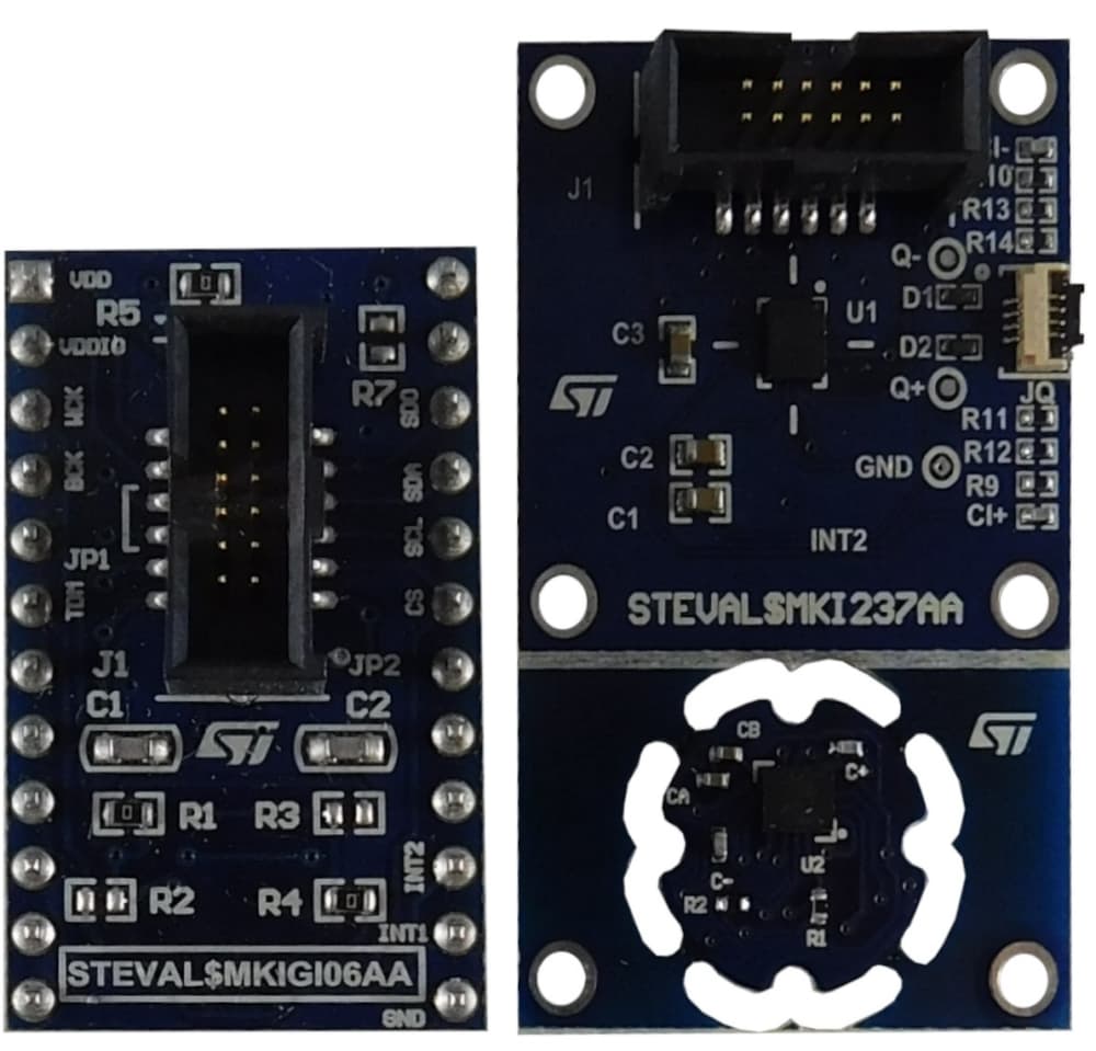 The STEVAL-MKI237KA evaluation kit is based on a specific PCB mounting the LSM6DSV16BX IMU (inertial measurement unit). The kit provides the complete LSM6DSV16BX pinout and comes ready to use with the required decoupling capacitors on the VDD power supply line.