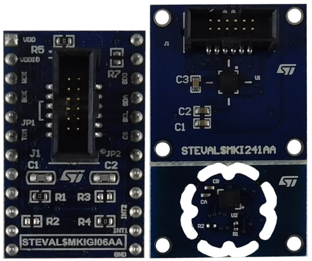 Both boards can be connected to the STEVAL-MKI109D via the STEVAL-MKIGI06A interface board.