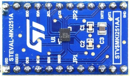 STEVAL-MKI251A可插入标准DIL 24插座。该适配器提供完整的LSM6DSV320X引脚布局,并在VDD电源线上预装了所需的去耦电容,即插即用。