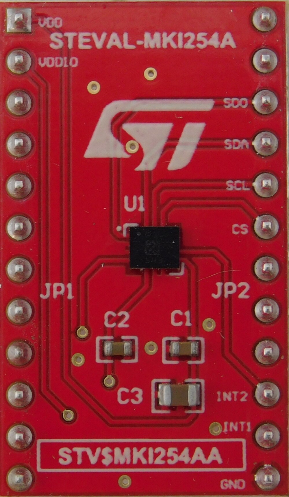 This adapter is supported by the STEVAL-MKI109D evaluation platform, which includes a high-performance 32-bit microcontroller functioning as a bridge between the sensor and a PC, on which it is possible to use the downloadable MEMS Studio graphical user interface or dedicated software routines for customized applications.