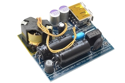 The small form factor and the output USB connector renders the design suitable for small USB chargers and adapters for mobile phones, tablets and other handheld equipment.