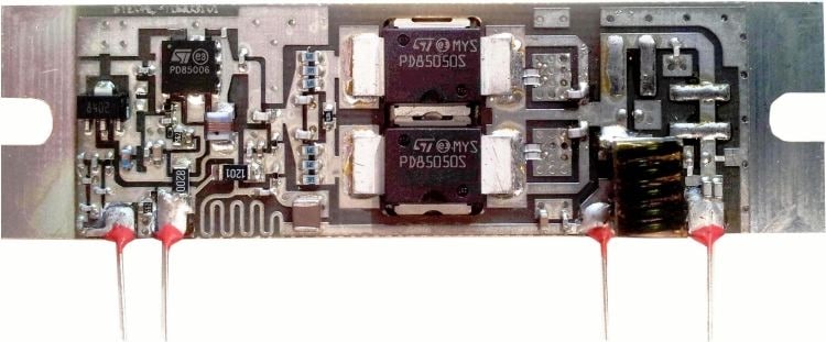 This module is a 3-stage lineup power amplifier using the PD84002, the PD85006L-E and two PD85050S specially designed for broadband operation, which allows power control, high gain and high efficiency.