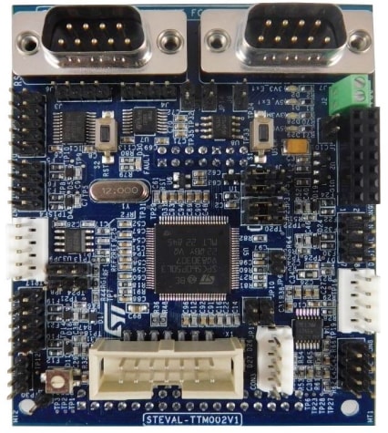 The STEVAL-TTM002V1 control board is based on the high performance SPC560P50L3 automotive microcontroller with dedicated peripherals for motor control, such as 10-bit analog-to-digital converters (ADC) and high resolution timers (FlexPWM) with complementary or independent outputs and ADC synchronization signals.
