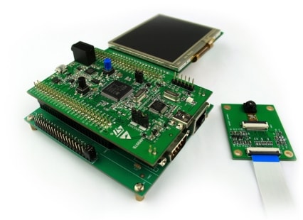 This set of four boards (STM32F4DIS-EXT) expands the functionality of the STM32F4 Discovery kit. A base board connected to the STM32F4 Discovery kit provides a microSD card™ slot, Ethernet connectivity, extension connectors for LCD and camera boards as well as an easy access to UART, SPI, CAN and other interfaces. The Wi-Fi® board connects to the STM32F4 Discovery kit using a serial host interface (UART or SPI). A digital camera board featuring a 1.3-Megapixel CMOS sensor and a 3"5 LCD board with touch-screen capability, connected to the base board along with a Wi-Fi® board featuring the SN8200 Wi-Fi® module, form a complete system. For more information, visit the webpage:http://www.st.com/stm32f4dis-expansion
